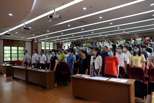 庆祝中国共产党成立99周年表彰会暨“讲战疫故事、悟初心使命”主题党日活动在望江校区正行楼(西二教)313报告厅教室举行。大会在庄严的国歌声中拉开帷幕。DB真人