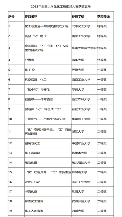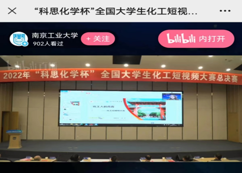2022年4月至11月,由中国化工学会主办、南京工业大学承办的2022年全国大学生化工短视频大赛已顺利结束。经过初赛、全国复赛、全国总决赛等环节,DB真人
