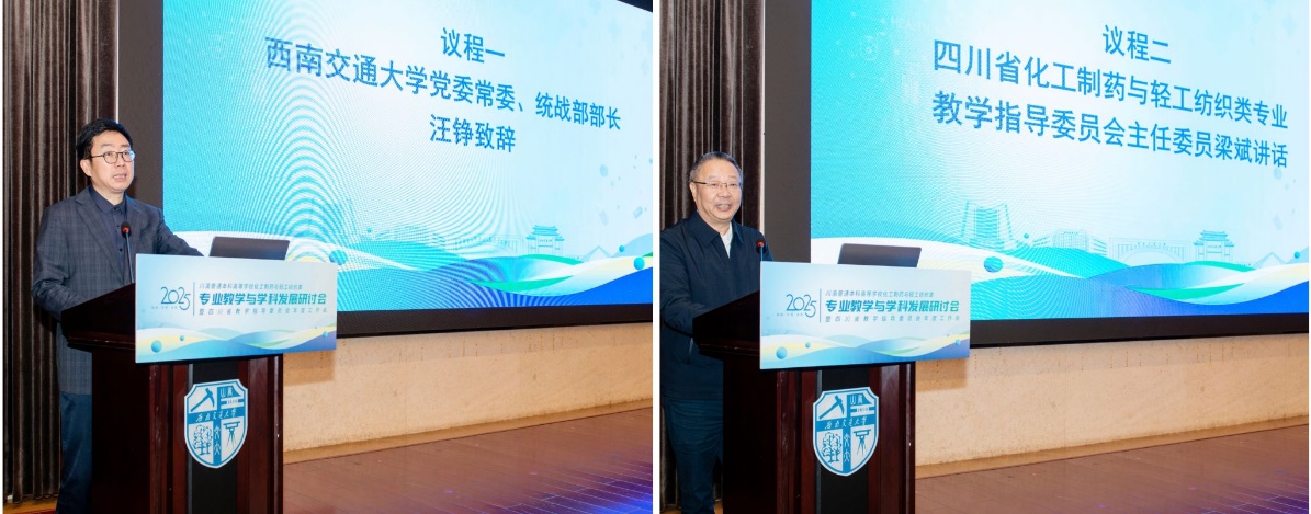由四川省普通本科高等学校化工制药与轻工纺织类专业教学指导委员会牵头主办的《2025年川渝普通本科高等学校化工制药与轻工纺织类专业教学与学科发展研讨会暨四川省教学指导委员会年度工作会》于2025年11月7日至9日在西南交通大学峨眉校区顺利召开。本次会议旨在深入贯彻落实全国教育大会及2025年全国教育工作会议精神,全面提升川渝高校化工制药与轻工纺织类专业人才培养质量。本届会议由西南交通大学承办。西南交通大学党委常委、统战部部长汪铮,四川省化工制药与轻工纺织类本科专业教学指导委员会主任委员、四川大学教授梁斌出席开幕式并致辞。开幕式由西南交通大学生命科学与工程DB真人
