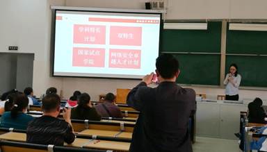 的基本情况、办学特色和专业特色;并认真回答了学生及家长广泛关注的“学科特长计划”、“网络安全卓越人才计划”等方面内容的提问。