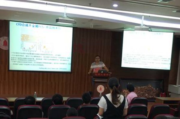 段曦东教授基于全面开发二维原子晶体材料所面临的问题——开发稳定、可靠的制备方法,实现精确控制,详细地向我们介绍了其报道杂志上的工作:研发了一种普适性的改性CVD策略,用于各种不同的二维异质结、二维多元异质结以及二维原子晶体超晶格等材料的精确、稳定制备。该研究成功解决了二维异质结、多异质结及超晶格制备所面临的关键性难题。同时段教授还展望了异质结在半导体领域以及光电器件等方面的巨大应用前景。报告引起了全场师生的浓厚兴趣。