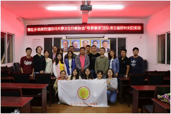 的13名川大学生以及西财和川影的两位同学组成的SCU文化行者协会组织“寻梦康定”团队,于7月26日至8月16日在甘孜州康定市雅拉乡三道桥村开展了关于藏族儿童教育和康定传统文化习俗的暑期三下乡社会实践活动。此次社会实践的聚焦问题有三:一是对康定地区传统习俗的科学性探究,二是少数民族对于自身传统文化保护不足,三是少数民族对于儿童教育问题的重视程度不足。针对这些问题,团队队员们兵分四路,对藏戏、藏传佛教、藏族传统民居等进行一系列的考察,同时,队员们对当地参与的74名中小学生进行了语文、数学、英语、音乐、趣味手工、拔河、卫生知识科普等教学活动,并利用前期募捐图书建立了“梦想图书角”,引导他们培养阅读和自我管理的能力。通过这次实践活动,同学们不仅锻炼了自己的能力,还在一定程度上为增强藏族地区文化自信和非遗文化保护力度、提高少数民族儿童教育问题重视程度以及推动少数民族传统习俗的继承与保护上贡献出了自己的力量。