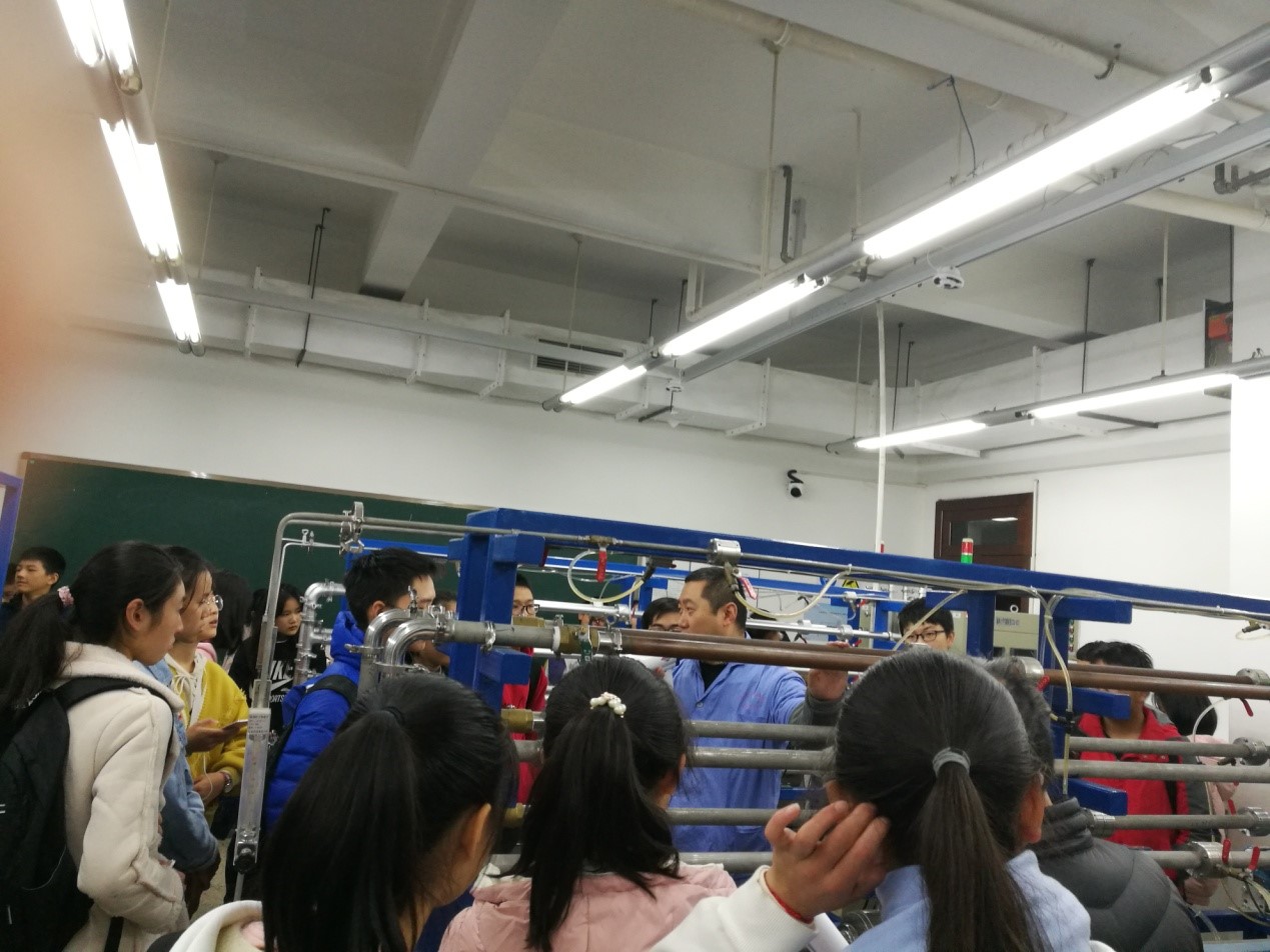 最后,吴潘老师带领同学们参观了化工原理基础实验室,向同学了详细介绍了流体、传热等实验设备,并结合生活中与化工相关的实例,使同学们了解了研究流体流动及传热等过程的作用及意义,激发了同学们对化工的兴趣。