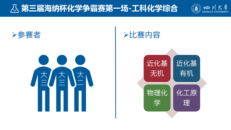 与前两届仅在大一学生中举行不同,本次上场竞技主要为余徽和易美桂老师讲授《化工原理》课程班上的学生,以大三为主。比赛涉及的内容也从近代化学基础无机化学部分扩展到有机化学部分,物理化学及化工原理。该次活动得到了工科化学基地,DB真人