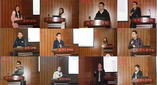 之后,论坛正式开始。来自李晖教授课题组的博士生孙巧媚为大家做了题为《食品添加剂与生物大分子的分子识别过程》的主题报告,介绍了8种食品添加剂在进入人体之后与蛋白质和DNA识别的过程分析;穆畅道教授课题组的博士生葛黎明的报告《纳米银的绿色制备及其在抗菌型胶原基复合材料中的应用》,为大家介绍了使用绿色还原剂双醛黄原胶制备纳米银,并将其应用于胶原基复合海绵材料,该材料在人体具有广泛应用前景;来自埃塞俄比亚的留学生Nigussie Alula Yohannes做了题为《Doping Metal Organic Frameworks with Ionic Liquids for Adsorption of Tetracyclines from Water Samples》的报告,他表示离子液体目前在各个领域均具有广泛地应用,将离子液体掺杂金属有机骨架多孔材料可以提高其吸附存储性能,拓宽其应用领域。之后,他表示很高兴参与这样的论坛,也从其他博士的报告中学到了很多东西,希望之后可以继续加强与其他同学的交流。之后,冯雪婷、胡婉蓉、雷金凤、龚贵东、李盼禹分别为大家做了《用磁性离子液体选择性提取和分离茶叶中的茶多酚》、《剩余污泥的减量与资源化》、《明胶基自愈合水凝胶的构建》、《透明质酸包裹环钯化合物纳米胶束的制备及其抗肿瘤活性研究》和《餐厨垃圾的资源化综合利用》的报告。
