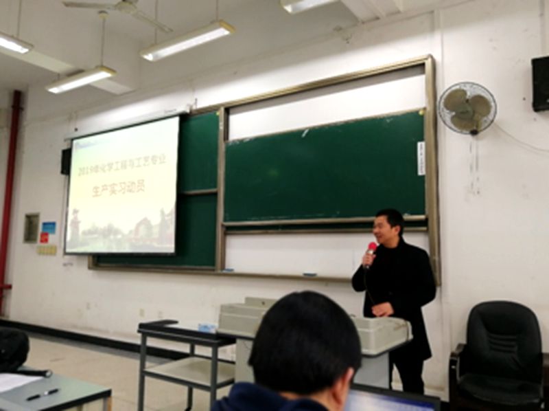 化工专业本科生的培养质量。院长助理、化工实训教研室主任郭孝东教授强调了化工生产实习的重要性,介绍了实习工作中的注意事项,并对化工生产实习工作进行了布置。陈建钧老师对全体学生进行了实习安全教育和PVC工艺流程介绍。