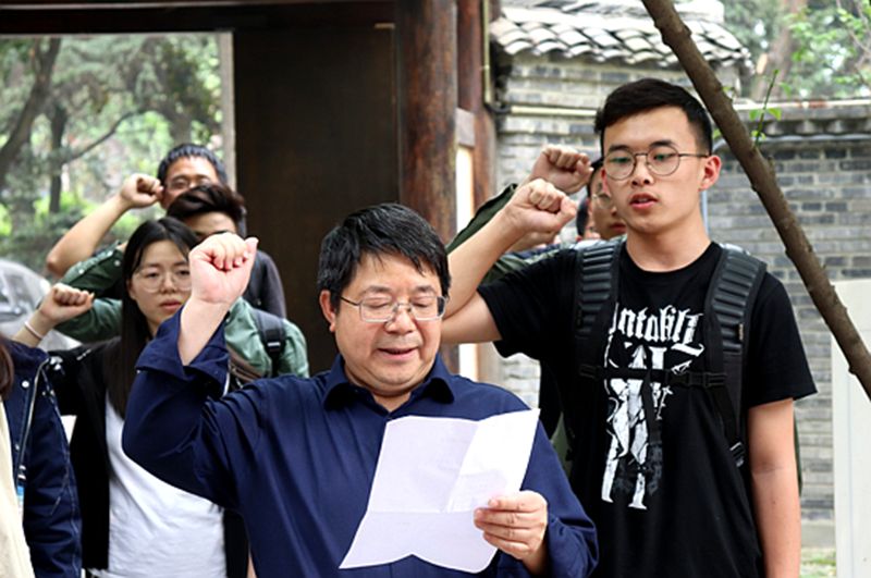 活动伊始,全体人员怀着崇敬的心情齐唱国歌。歌声嘹亮,气势雄浑。随后,四川大学党委学工部部长陈森致辞。他对同学们讲道:“四川大学未来怎么做,怎么培养一流学生,从根本上讲,就是要解决同学们如何对待人生、事业这一理想和信念的问题。同学们是否有大格局、大勇气、大本事,决定了能不能过好幸福的一生,去带领好周围的人去肩负好青年一代人的历史使命。大家要更加地紧密团结在一起,相互支持,相互帮助。”