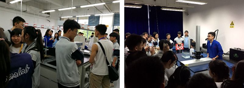 李季老师作为活动主持代表中心对同学们的到来表示欢迎,在简要介绍了中心的整体情况之后,林翔、李季老师带同学们参观了制药、化工专业实验室,左炀、魏竭老师对一些精密仪器设备的功能、原理和运行情况进行了详细讲解。并与参观学生进行了深入地交流,对他们提出的疑问给予了解答,现场气氛十分活跃。