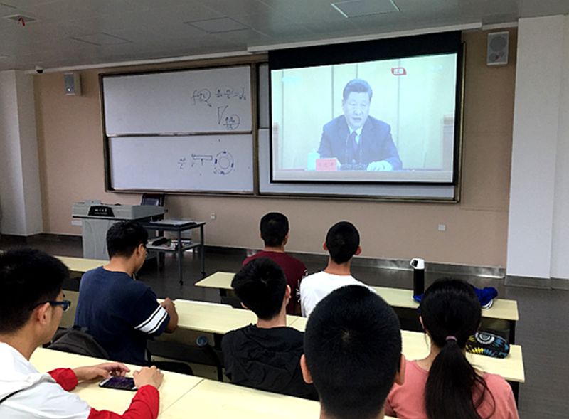 青年学生还分别在教室、寝室等场所收看了大会直播。