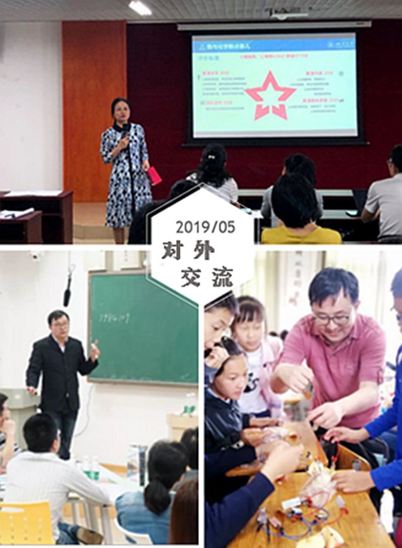在内部相互学习促进的同时,教研室也积极展开对外的交流宣传活动。5月10日,教研室周加贝老师来到中南大学,面向不同学科背景的52名中青年教师,做了《渐进式混合式教学在工科新生中的实践与思考》的报告,分享了他从教以来对于教学改革的实践与思考。5月18日,教研室赖雪飞老师在五邑大学为参加"OBE理念进课堂"的老师进行了《以学为中心的课程建设实践——以基础化学课为例》的讲座。分享了她在多年的教学中组织的各类丰富生动的教学活动的经验。5月15日,周加贝老师更是践行教育从娃娃抓起,为川大附小的同学们带去了一堂生动有趣的化学课——《水果电池》。向小朋友们展现了化学的魔力,在小朋友的心田种下了科学探索的种子。