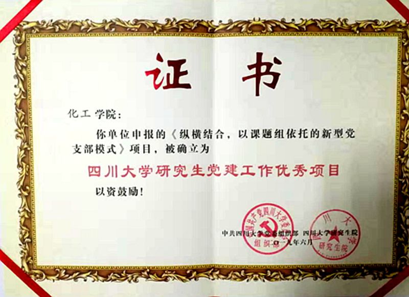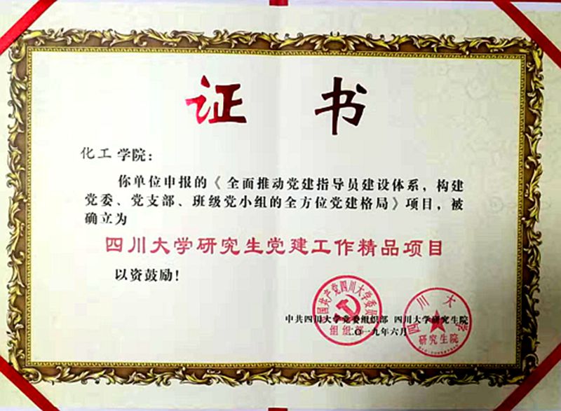 为深入贯彻党的十九大及全国高校思想政治工作会议精神,认真落实《四川大学关于进一步加强和改进研究生思想政治教育的实施意见》(川大委〔2017〕52号),践行党要管党、全面从严治党的政治要求,四川大学党委组织部和研究生院共同开展了研究生党建项目评比工作,并于2019年6月24日对研究生党建工作精品项目和优秀项目进行授牌。DB真人