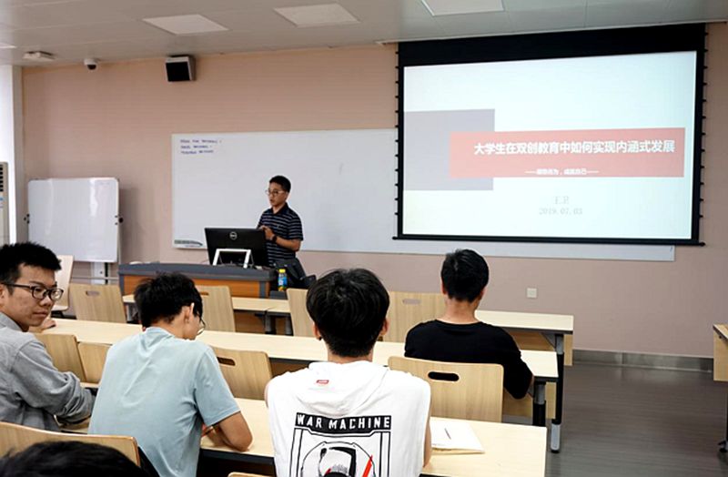 此次交流分享会,王卫围绕着“大学生在双创教育中实现内涵式发展”,给同学们展现了大学生创新创业的蔚蓝宏图;同时,王卫通过列举亲身经历,让同学们更好的理解了双创的重要性和意义并对自己的未来有了明确的规划。