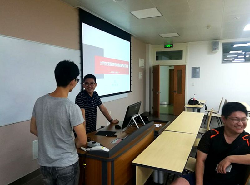 之后,王卫介绍了自己的感悟,并简单介绍了自己的获奖情况,展示了自己在双创中的收获和成长,并分享了自己对创业的理解,让同学们在轻松的氛围中了解到创业的魅力,对双创有了进一步的认识。