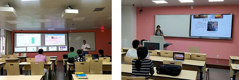 三位参赛教师充分利用学校智慧教室教学设施,采用多方位教学互动模式,深入浅出地为现场同学讲解专业知识原理。三位老师都充分展现出了各自的专业特点和个人授课特色。在准确把握教学内容的同时,充分调动了同学们的积极性,让同学们在课程环节中充分思考,充分参与,高效地把握教学知识,巩固学习内容。