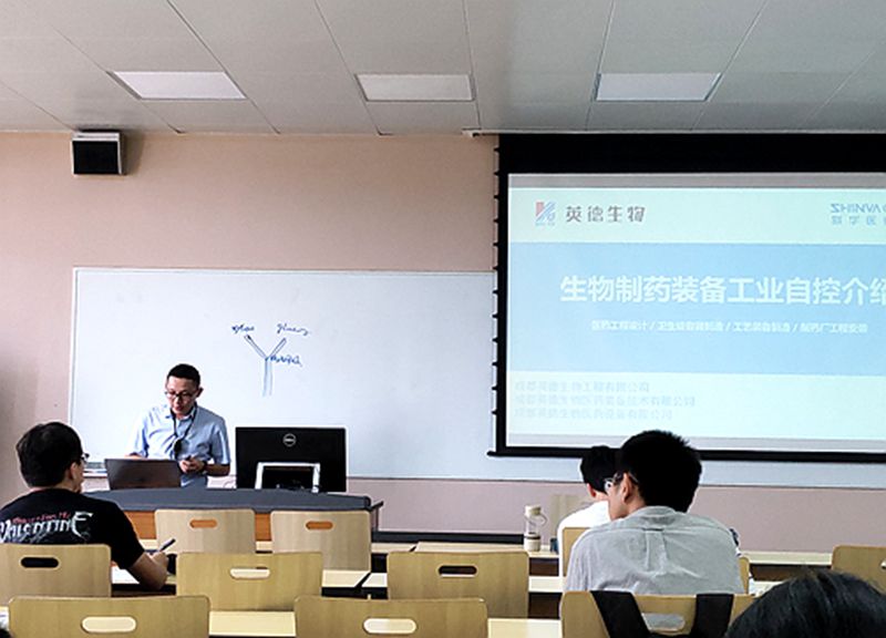 2019年7月9日13:50至16:25于四川大学江安校区第一教学楼A座106,来自成都英德生物医药装备技术有限公司的高级工程师韩飞飞和自动化信息部总监陈跃辉给DB真人