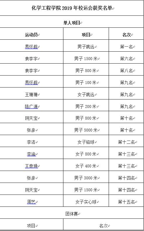 学子在2019年校运会中获奖名单