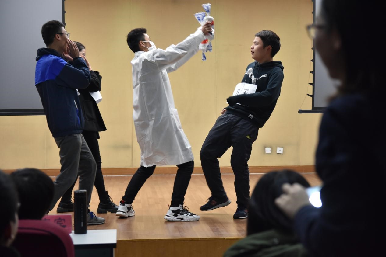 按照比赛流程,各班首先进行调研成果介绍,随后进行班级才艺表演展示。其中,绿药301班以“磷石膏资源回收与再利用”为主题分享调研报告,并采用小品回顾 “铁人”王进喜的一生,展现了上世纪60年代石油化工人“有条件要上,没有条件创造条件也要上”的无比坚定的信念,表明延续其品质的一代又一代化工人必将续写化工的华章。绿药306班以生动形象的图片展现了水凝胶的特性与应用,然后以原创《骄傲化工人》的诗朗诵震撼全场,每个人满怀豪情,心怀梦想,向化工、向祖国大声喊出自己的赤子之心,以新时代中国化工人的姿态向世界发出挑战,向中国化工梦进发。绿药303班对化工DB真人