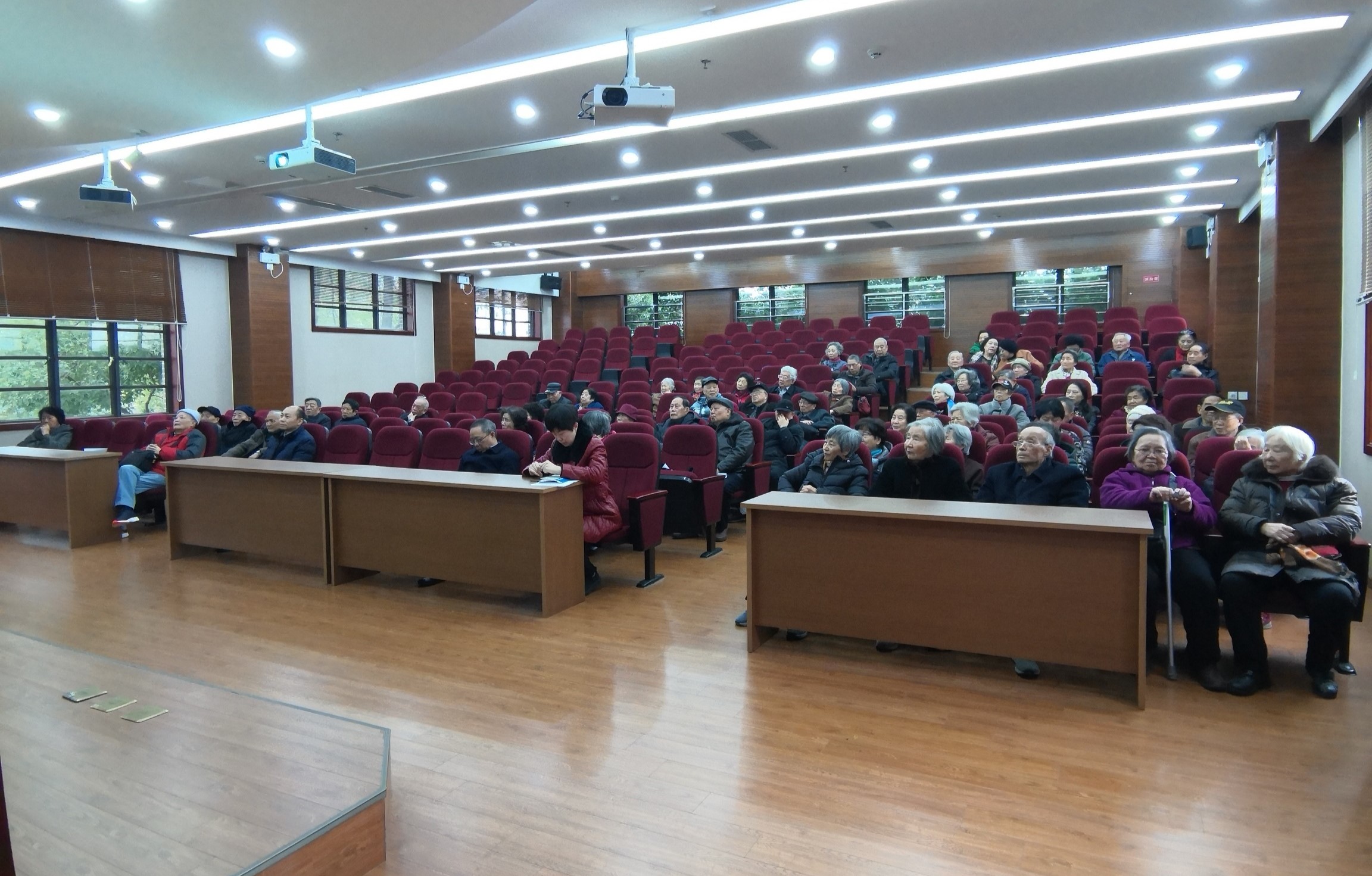 近100位离退休老教师参加通报会。会议由李天友同志主持。