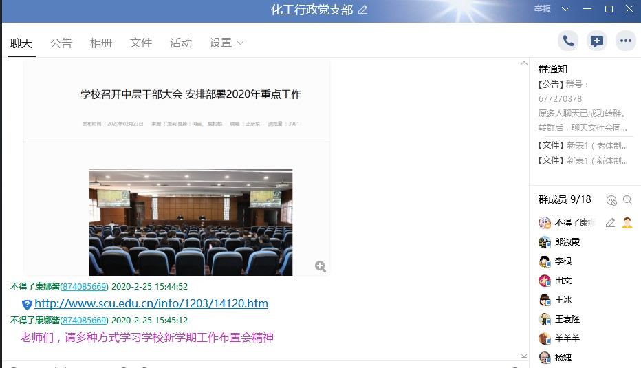 全体教师通过QQ群、微信群、微信推送、视频会议等多种形式对学校2020年工作布置视频会议精神进行了学习。
