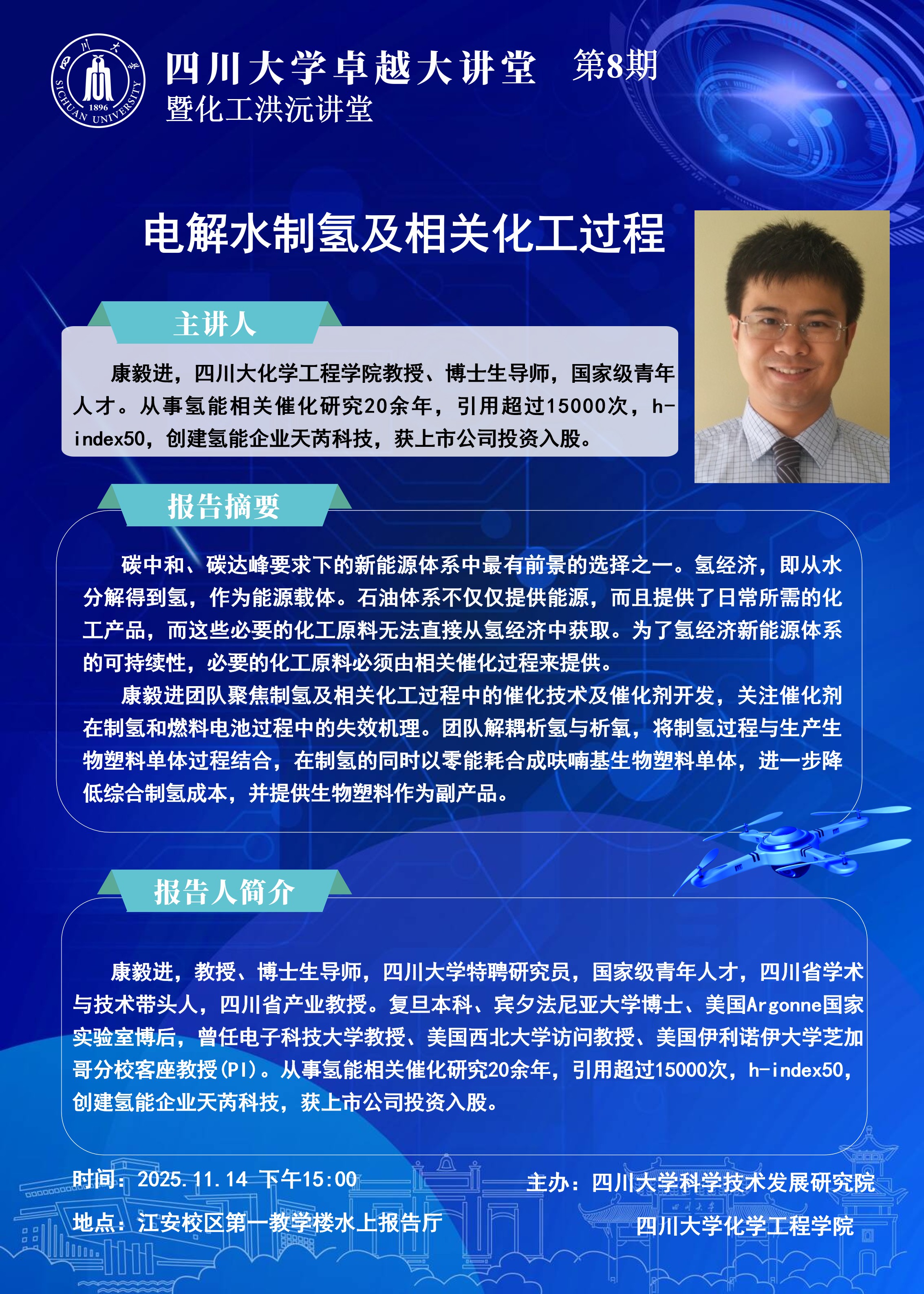 讲座老师 康毅进老师 讲座地点 江安校区水上报告厅