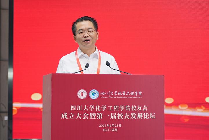校友会的成立表示热烈祝贺,介绍了当前学校在推进高质量发展中取得的成绩。他强调,学校一直高度重视校友工作,并将校友赋能列为高质量发展的重点任务。诚盼广大校友与母校同心携手,围绕一流大学建设和高质量发展目标,汇智聚力、聚资赋能,共同答好“强国建设,川大有为”的时代命题!